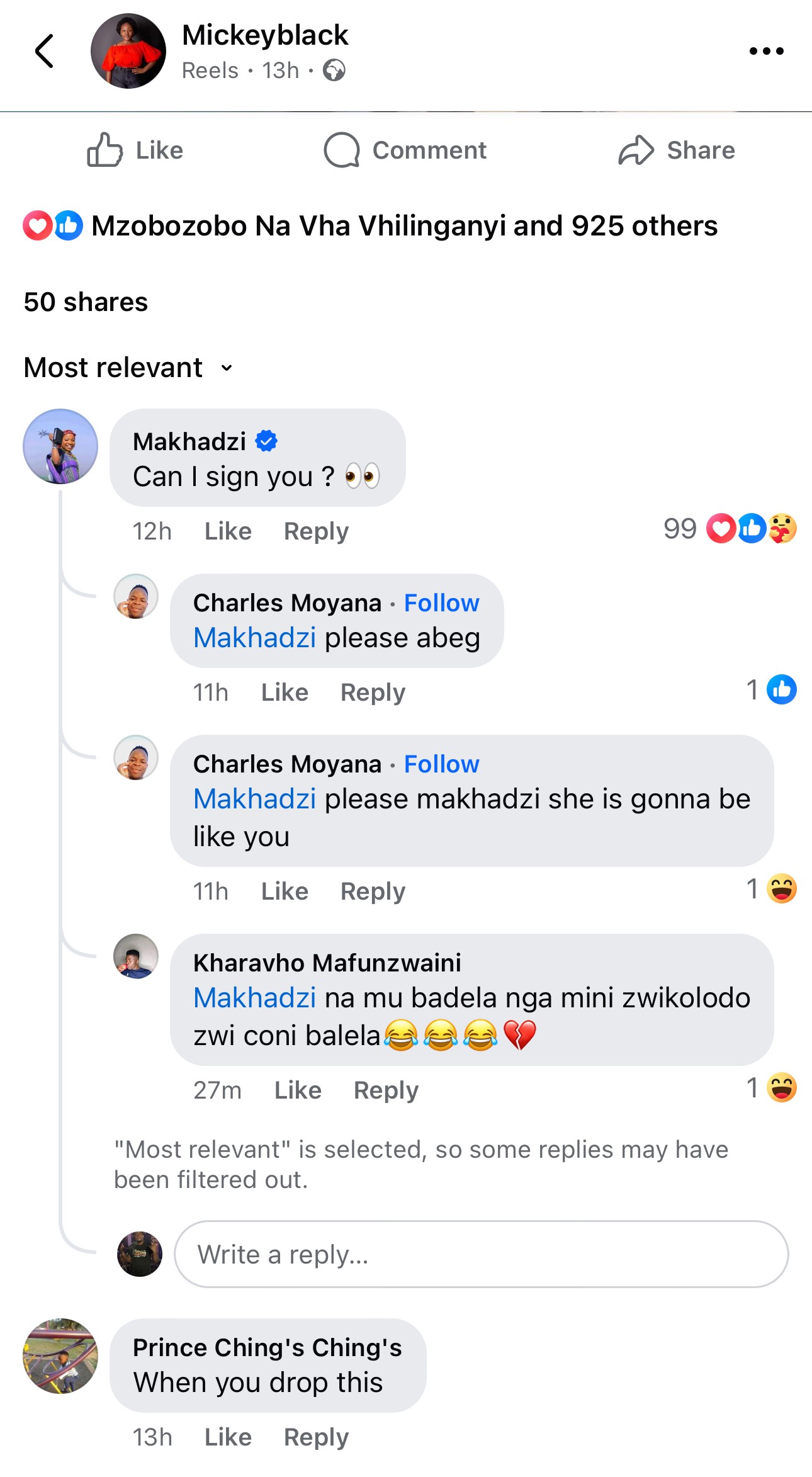 MickeyBlack recently posted a clip from her hit song Kushintshile feat. Fortunator & Dj Gun-Do SA.